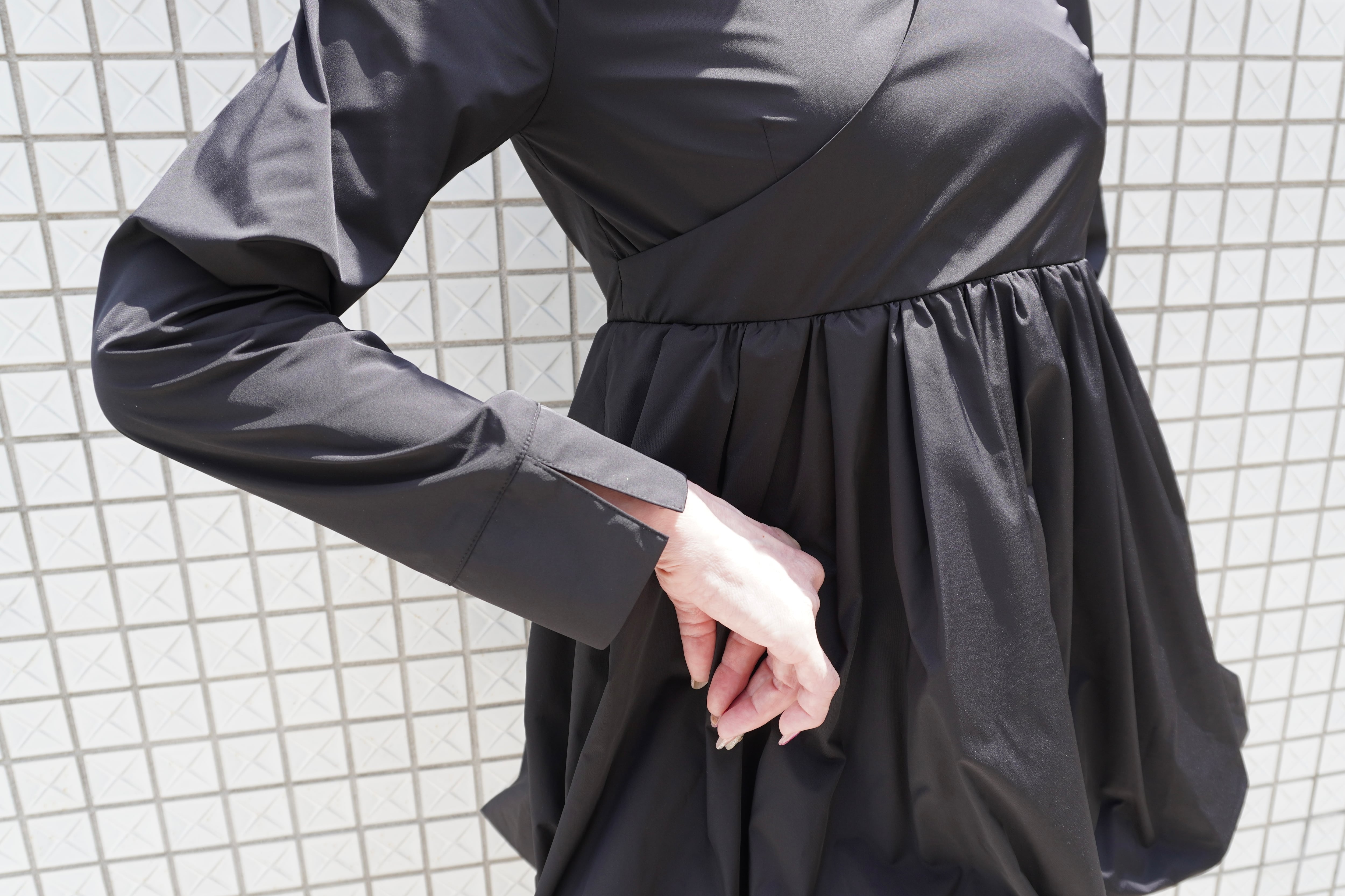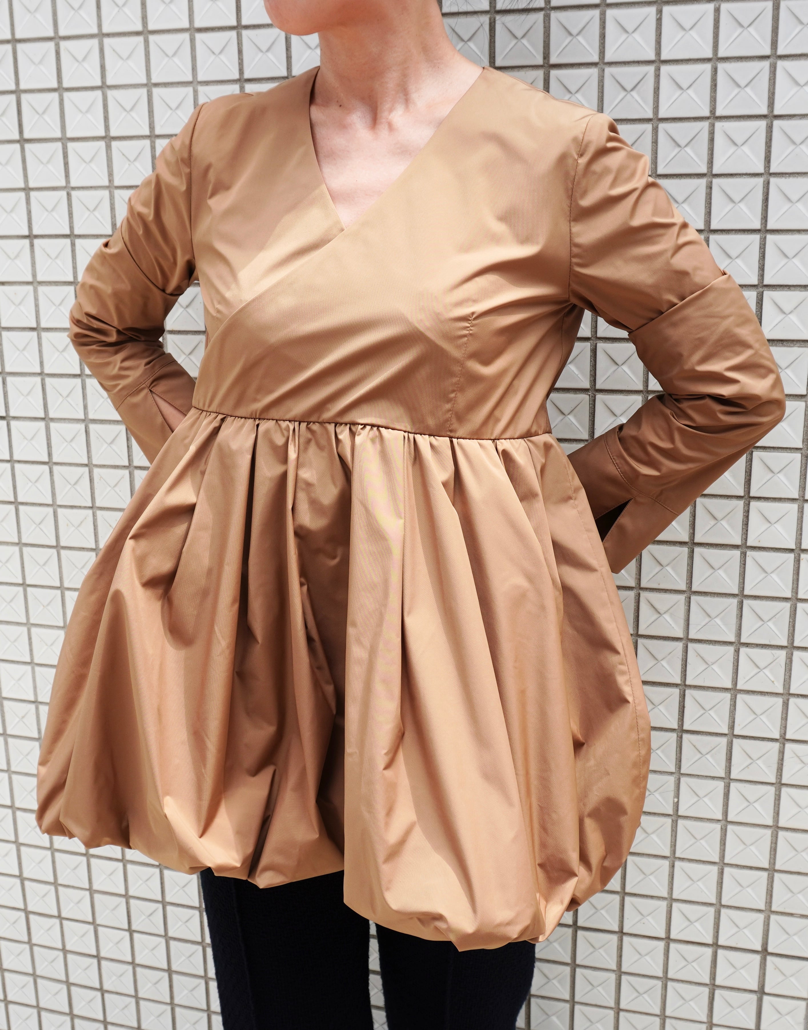 美しいペプラムデザインが特徴のカシュクールスタイルで、女性らしい魅力を引き立てる一着です。軽やかな素材で作られており、普段使いから特別なシーンまで幅広く活躍します。動くたびに柔らかなフレアが生まれ、エレガントな印象を与えます。