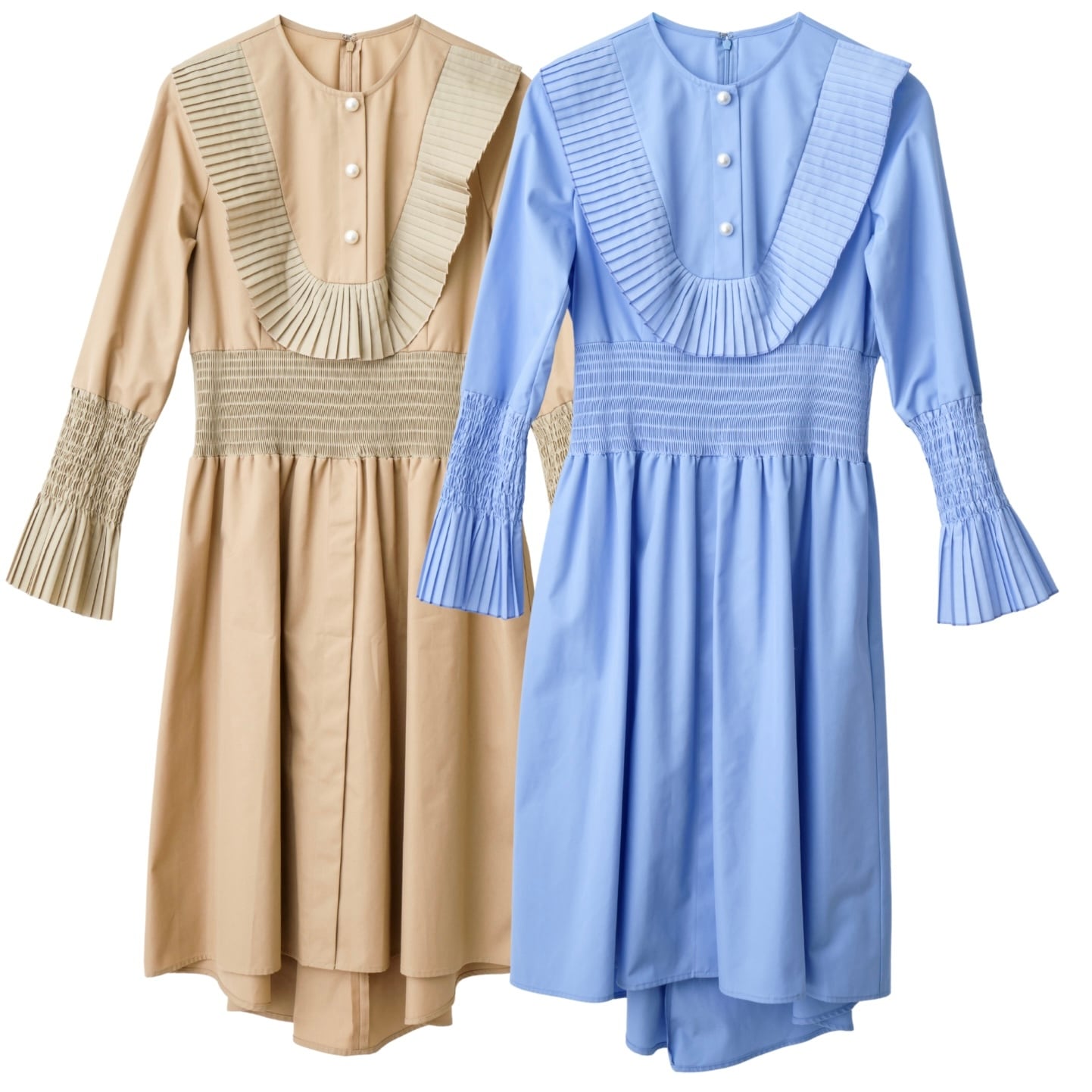 細かいプリーツが上身頃・袖口にあり、女性らしく、華やかな印象に。