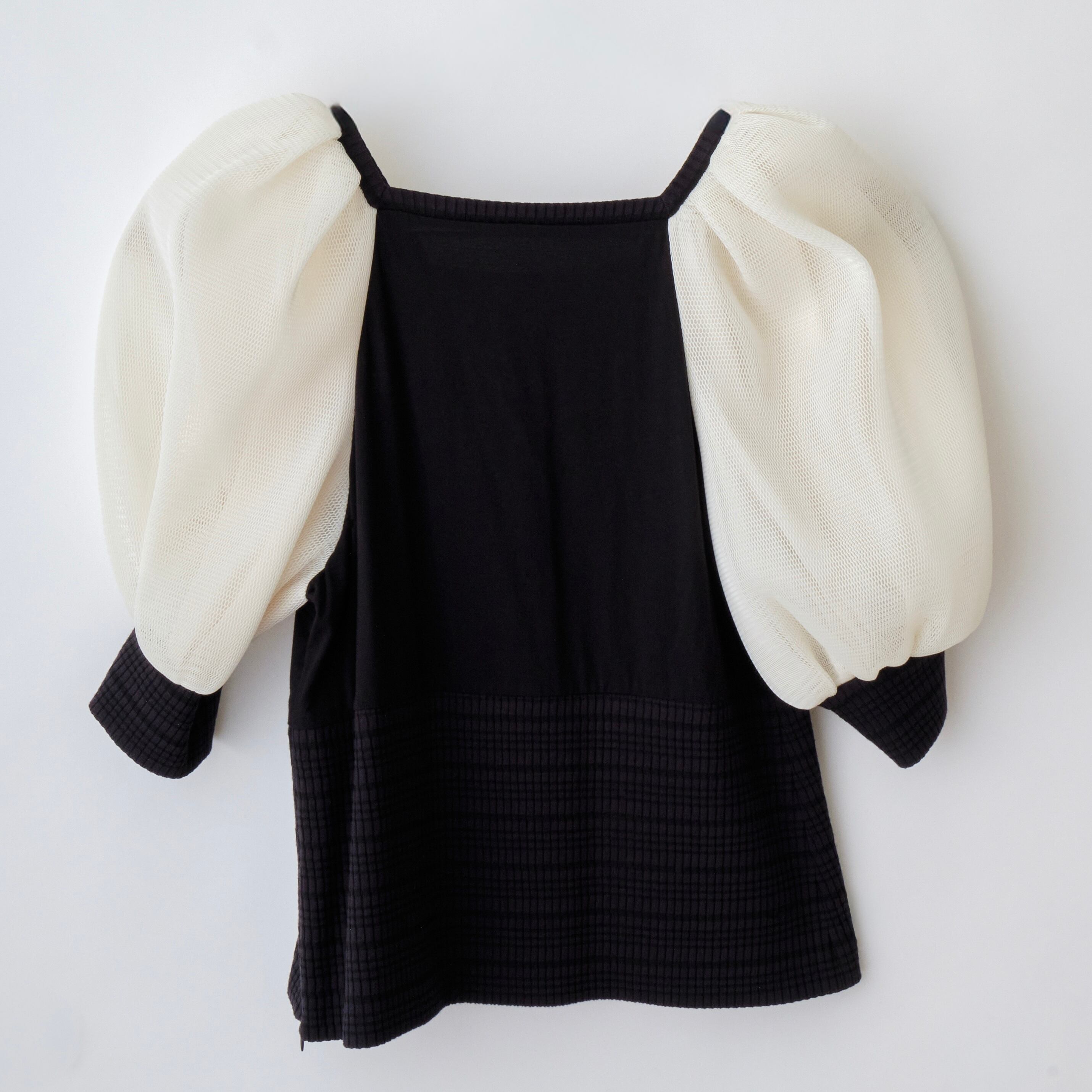 このメッシュバルーントップスは、デニムやショートパンツとの組み合わせが抜群で、様々なシーンで活躍します。軽やかさとトレンド感を兼ね備えた、オシャレで使いやすいアイテムです。ぜひ、コーディネートの主役としてご堪能ください。