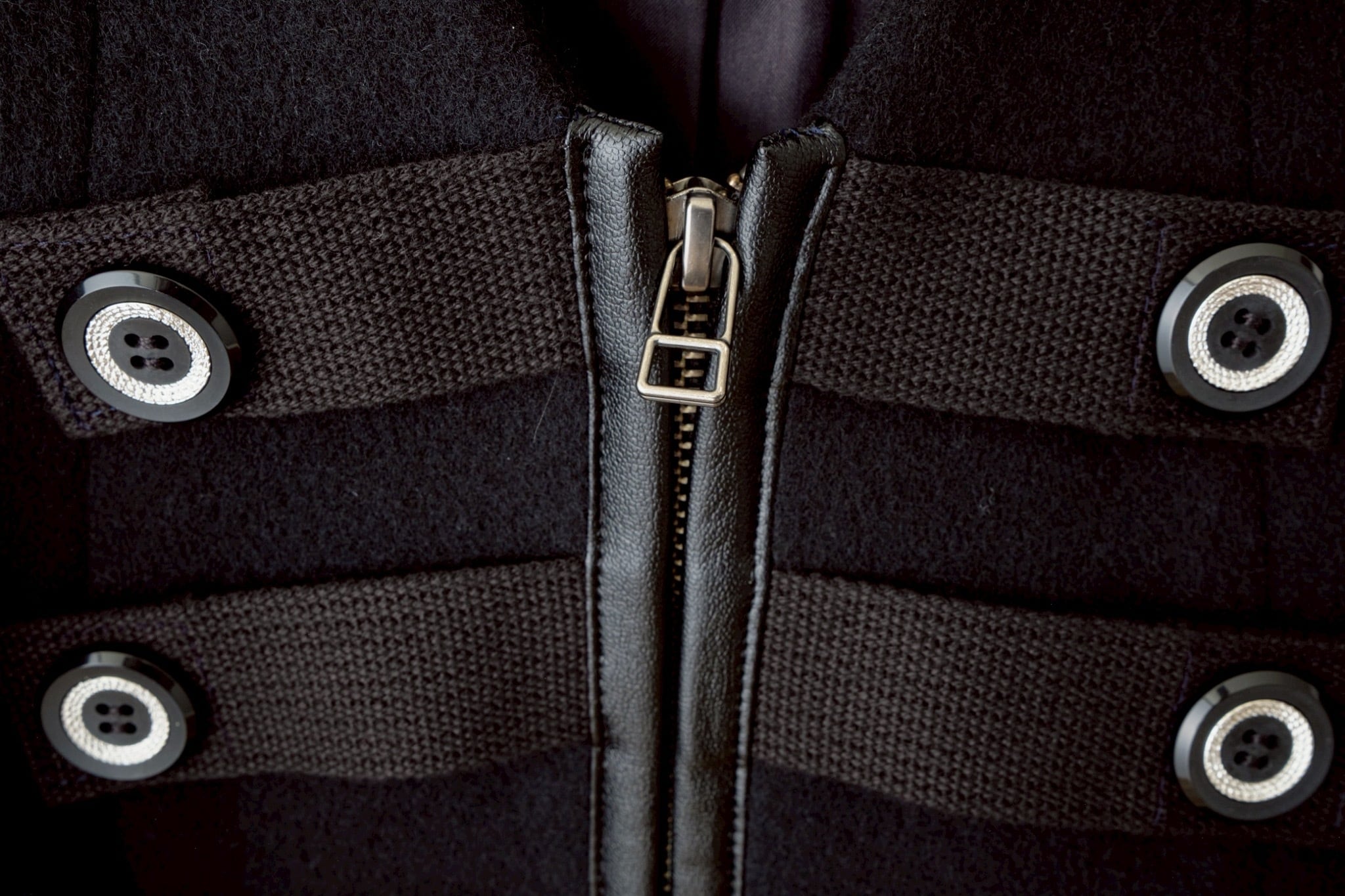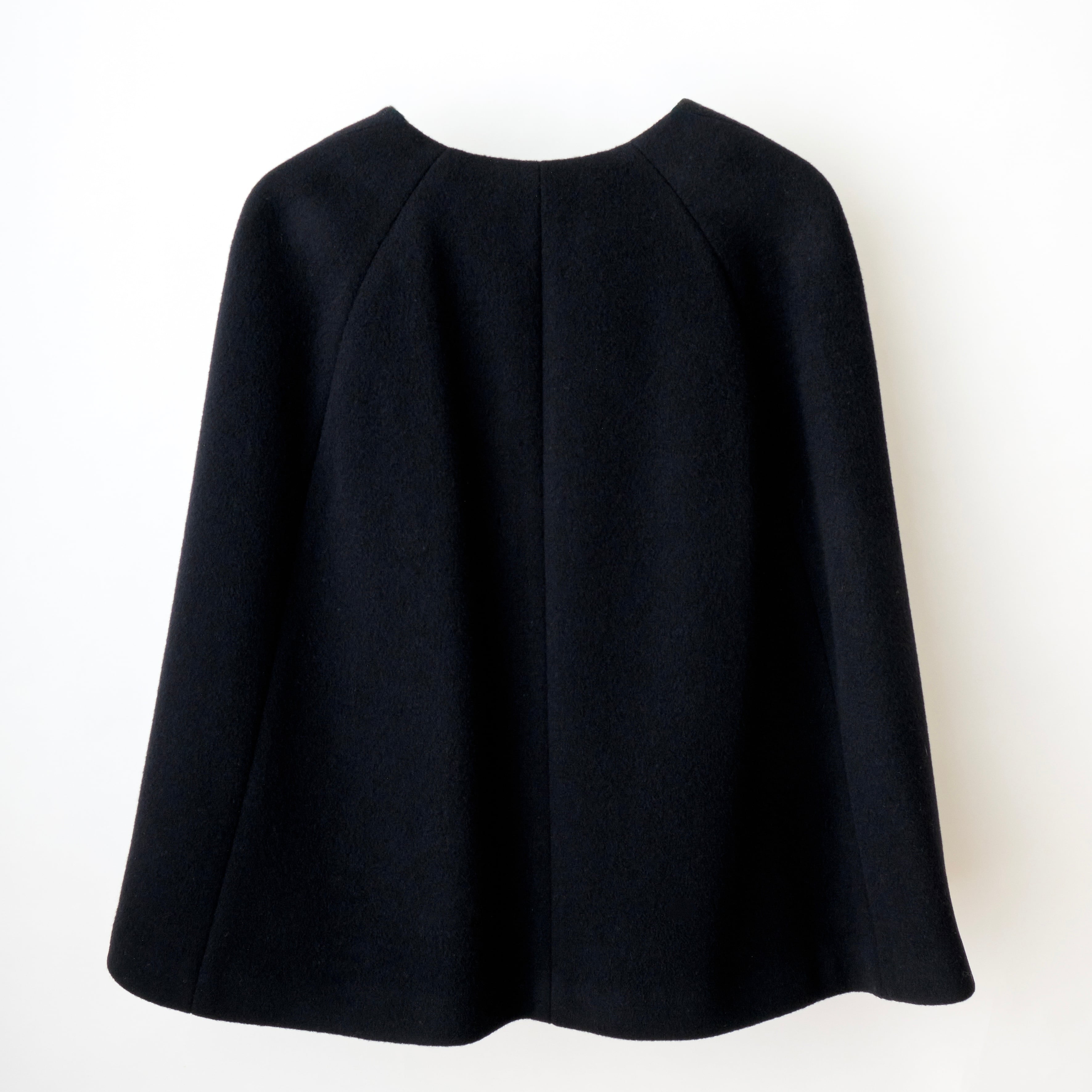 エレガントかつ洗練されたデザインが目を引くミリタリースタイルのケープジャケット。フロントにはメタル調の装飾が施され、クールなアクセントに。動きやすいケープ仕様が実用性とモード感を両立しています。ブラックカラーはどんなコーディネートにも合わせやすく、フォーマルからカジュアルまで幅広いシーンで活躍。細部にまでこだわった仕立てが高級感を演出します。コーディネート次第で多彩な表情を楽しめる一着です。